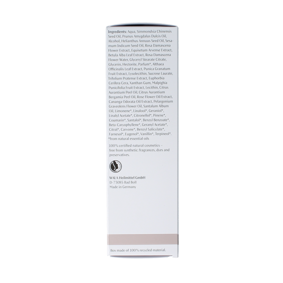De rijke samenstelling met candelillawas, roos, rode klaver, heemst en berkenbladeren helpt de huid haar elasticiteit te behouden en reguleert het vochtgehalte van de huid.