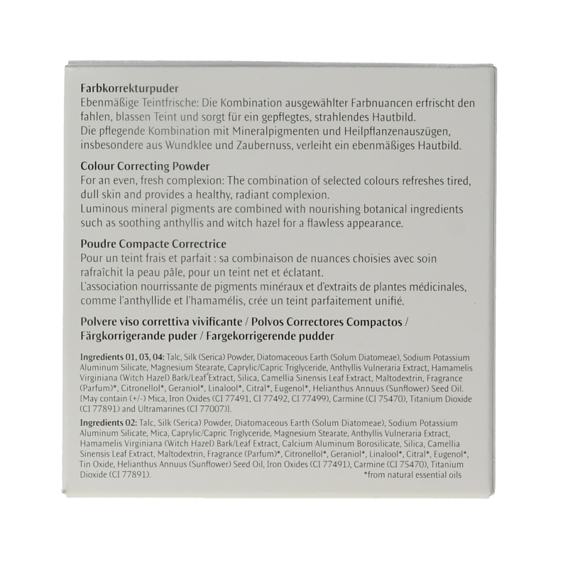 Dit poeder van Dr. Hauschka bevat telkens vier verschillende minerale tinten voor een perfect egale teint. De verschillende kleurnuances zorgen voor een verscheidenheid aan schaduwen en highlights – voor een persoonlijk make-upresultaat. De poeder is geschikt voor elk huidbeeld.