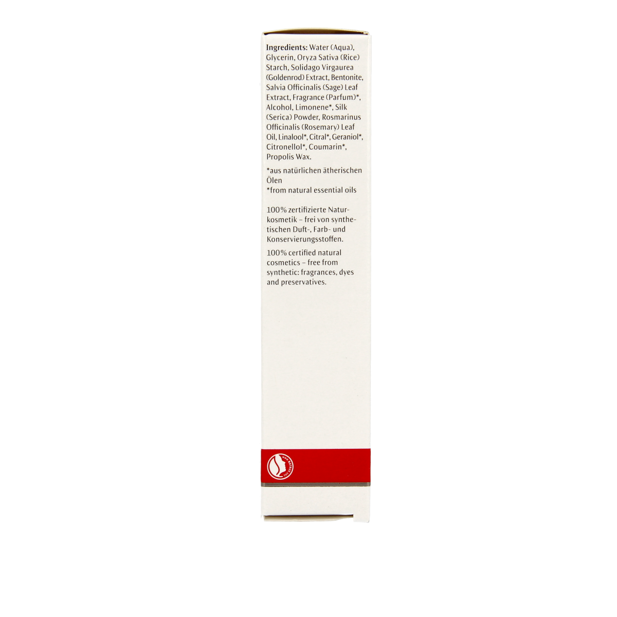 Aqua, Glycerin, Oryza Sativa Starch, Solidago Virgaurea Extract, Bentonite, Salvia Officinalis Leaf Extract, Parfum*, Alcohol, Limonene*, Serica Powder, Rosmarinus Officinalis Leaf Oil, Linalool*, Citral*, Geraniol*, Citronellol*, Coumarin*, Propolis Cera.