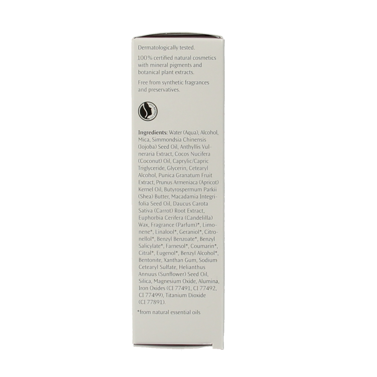 De samenstelling van minerale pigmenten en heilzame plantenextracten als granaatappel, macadamianoot- en kokosnootolie, hydrateert je huid en beschermt haar tegen externe invloeden.