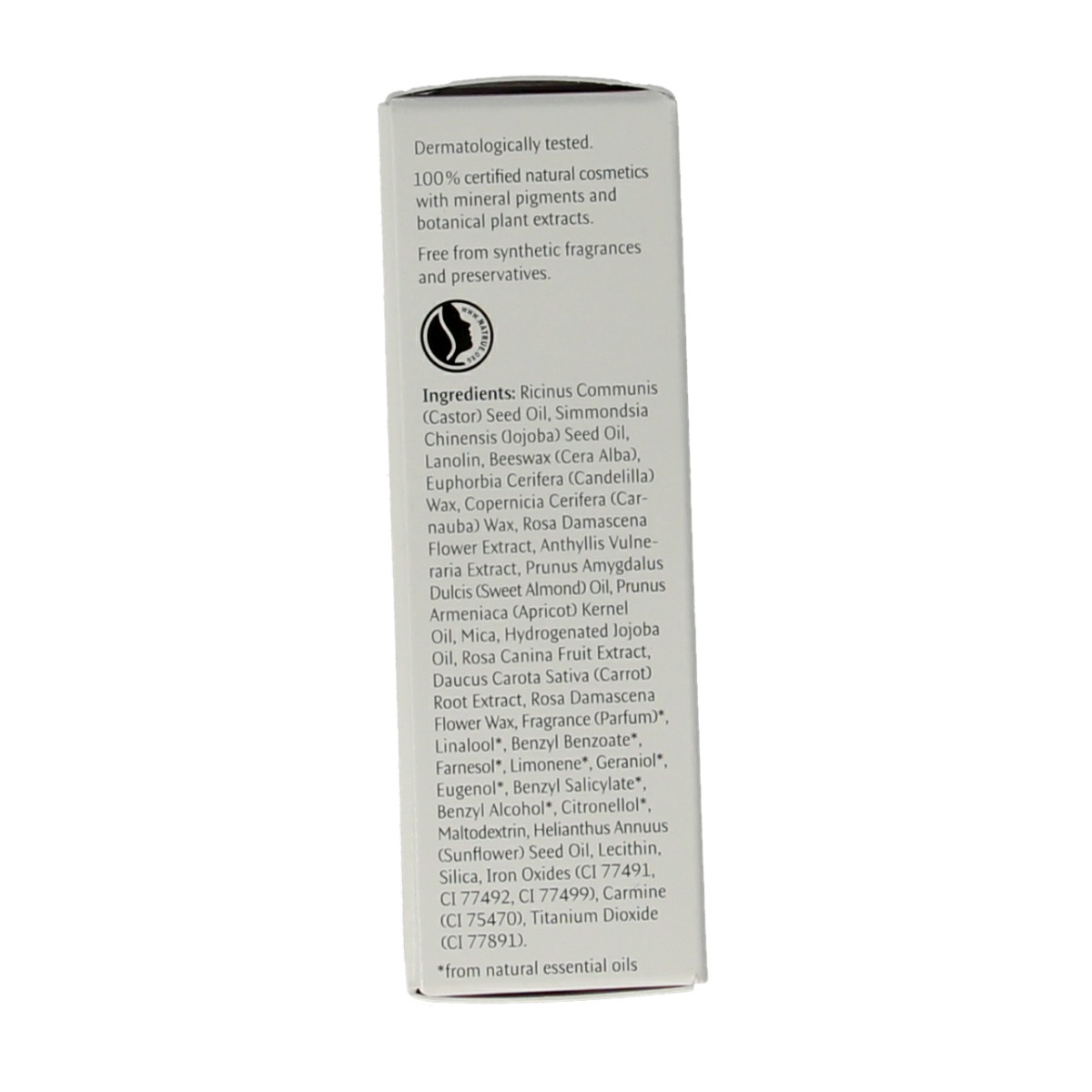 Ricinus Communis (Castor) Seed Oil, Simmondsia Chinensis (Jojoba) Seed Oil, Lanolin, Beeswax (Cera Alba), Euphorbia Cerifera (Candelilla) Wax, Copernicia Cerifera (Carnauba) Wax, Rosa Damascena Flower Extract, Anthyllis Vulneraria Extract, Prunus Amygdalus Dulcis (Sweet Almond) Oil, Prunus Armeniaca (Apricot) Kernel Oil, Mica, Hydrogenated Jojoba Oil, Rosa Canina Fruit Extract, Daucus Carota Sativa (Carrot) Root Extract, Rosa Damascena Flower Wax, Fragrance (Parfum)*, Linalool*, Benzyl Benzoate*, Farnesol*, Limonene*, Geraniol*, Eugenol*, Benzyl Salicylate*, Benzyl Alcohol*, Citronellol*, Maltodextrin, Helianthus Annuus (Sunflower) Seed Oil, Lecithin, Silica, Iron Oxides (CI 77491, CI 77492, CI 77499), Carmine (CI 75470), Titanium Dioxide (CI 77891).