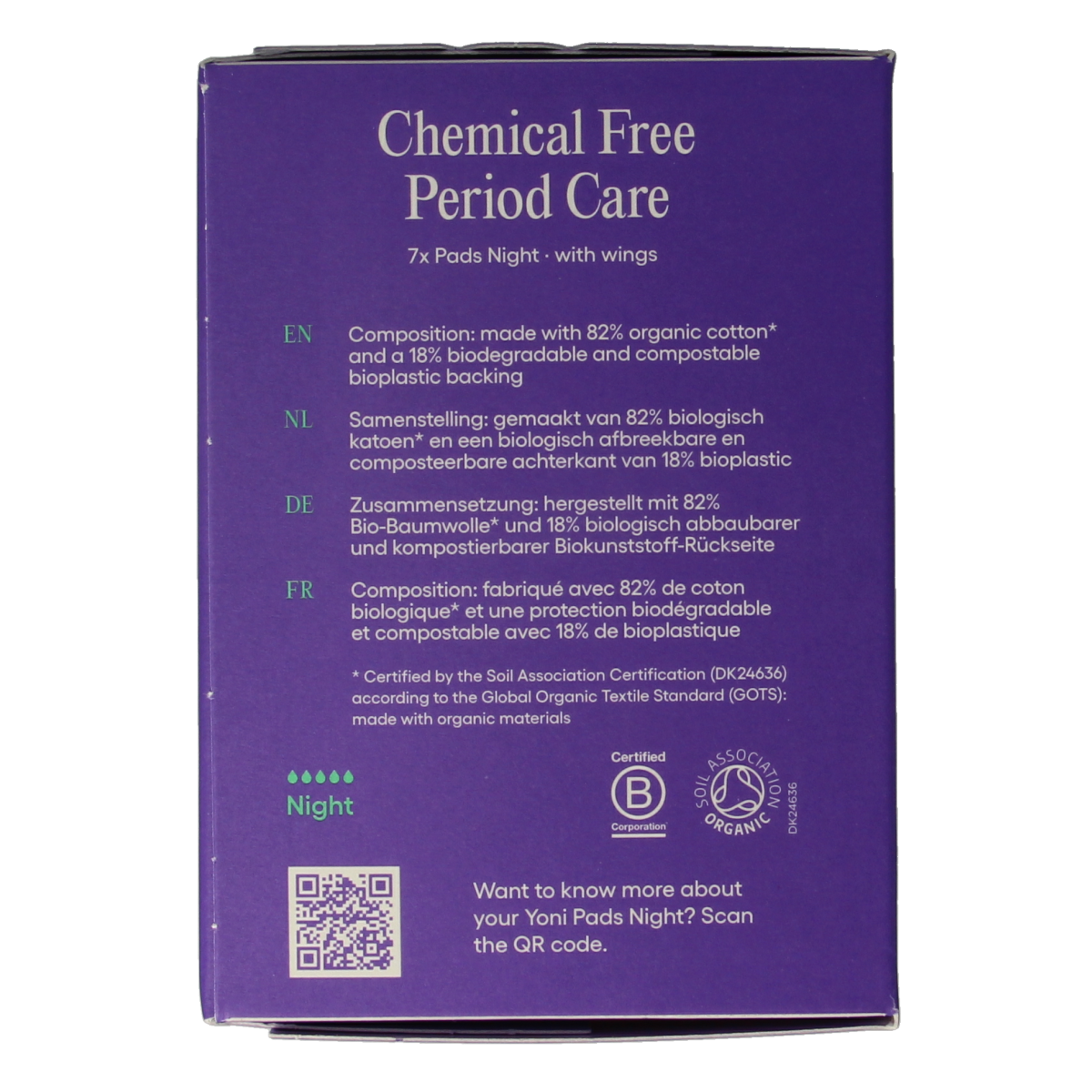 Maandverband Night is gemaakt van gecertificeerd 100% biologisch katoen (zowel de toplaag en de absorberende kern). Biologisch katoen is duurzaam, ademend en zacht voor je huid.