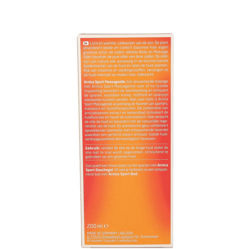 Een massage met Arnica Sport Massageolie voor het sporten helpt spierkrampen en stijfheid voorkomen. Na lichamelijke inspanning zorgt het verwarmende effect van de olie ervoor dat de spieren goed ontspannen. Tegelijkertijd stimuleert ze de natuurlijke regeneratie van de huid, waardoor deze gezond en elastisch blijft. Ook bij stijfheid in nek en schouders brengt Arnica Sport Massageolie verlichting. Daarom is dit product dan ook al jaren de favoriet van tal van sporters, masseurs en fysiotherapeuten.