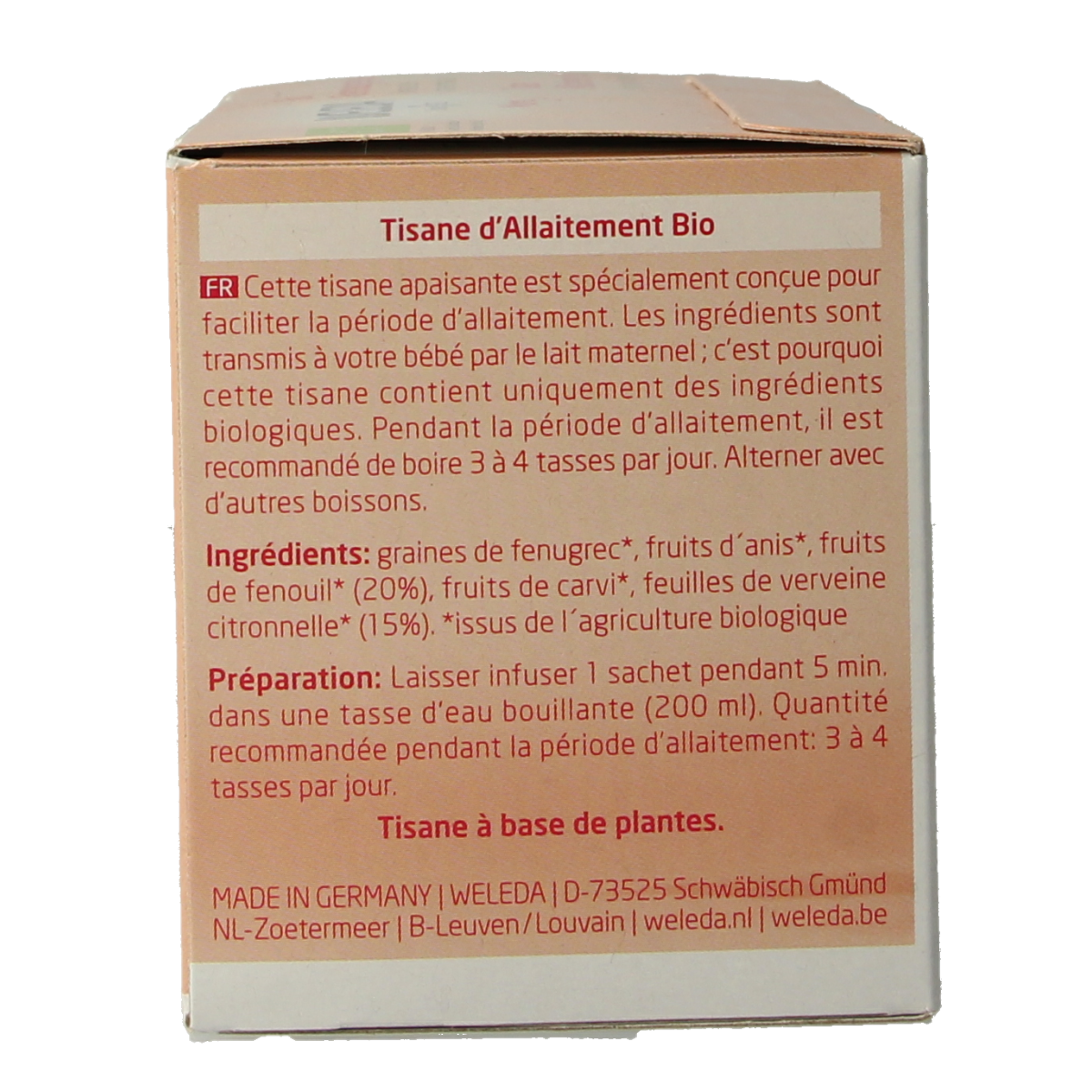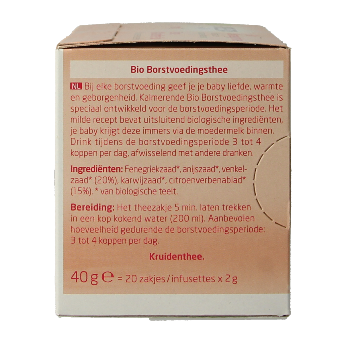Het theezakje 5 min. laten trekken in een kop kokend water (200 ml). Aanbevolen hoeveelheid gedurende de borstvoedingsperiode: 3 tot 4 koppen per dag.