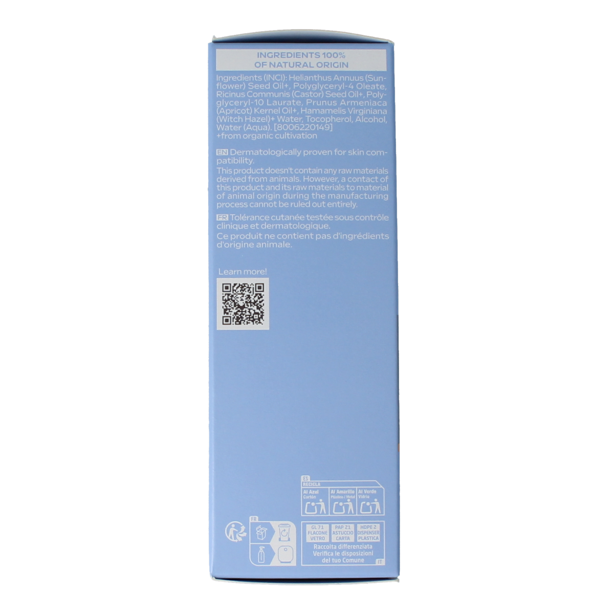 Reinigingsolie & Make-up Remover met biologische abrikozenpitolie en biologische Hamamelis is de ideale eerste stap in je reinigingsroutine. Deze plantaardige, parfumvrije reinigingsolie verwijdert met gemak waterproof (oog)make-up, vuil en onzuiverheden. Droogt de huid niet uit en laat geen vettig laagje achter. Voor een schone, zachte en gehydrateerde huid.