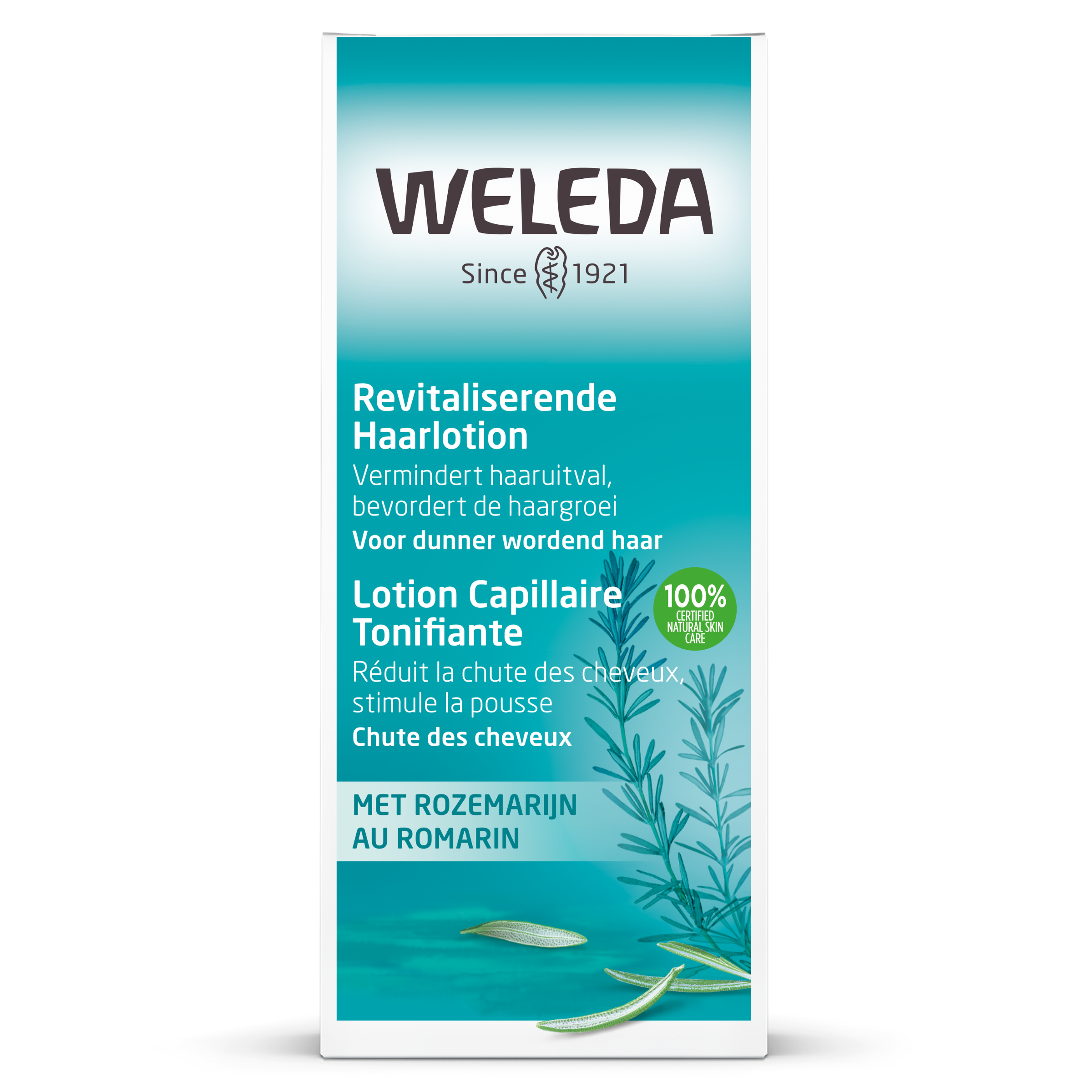 Revitaliserende Haarlotion is het eerste cosmeticaproduct dat in 1921 door Weleda werd ontwikkeld. De formule is samengesteld op basis van rozemarijnolie en extracten van biologische muurpeper en biologische mierikswortel, bekend voor hun tonifiërende werking. De lotion stimuleert de hoofdhuid, bevordert de natuurlijke haargroei en gaat zo haaruitval tegen.