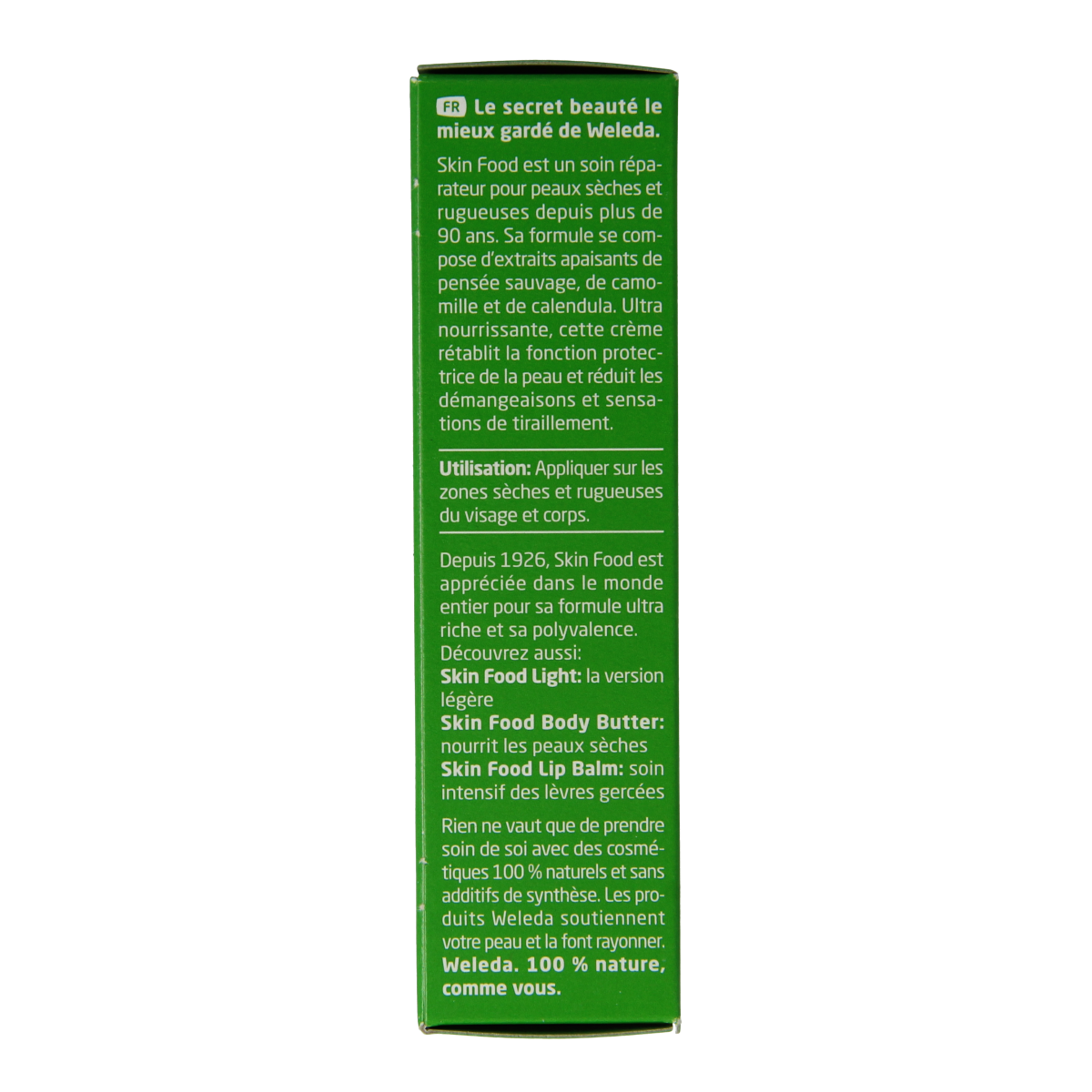 Skin Food is een 100% natuurlijke alleskunner. Deze intensief voedende crème herstelt de barrièrefunctie van de huid en vermindert jeuk en een trekkerig gevoel door droogheid. Kalmerende biologische plantextracten van driekleurig viooltje, kamille en Calendula vormen het hart van de formule. Skin Food zorgt voor een zichtbaar verbeterde huid die weer zacht en glad aanvoelt. Skin Food is dankzij de krachtige werking al jaren favoriet – ook bij celebs en visagisten.