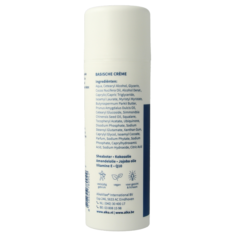 Alka Crème is een unieke basische formule -pH 8,2- met een rijke selectie natuurlijke oliën als kokosolie, shea boter, amandelolie en jojobaolie. Alka® Crème is veelzijdig in gebruik en een uitkomst voor veel huidcondities en huidtypes.