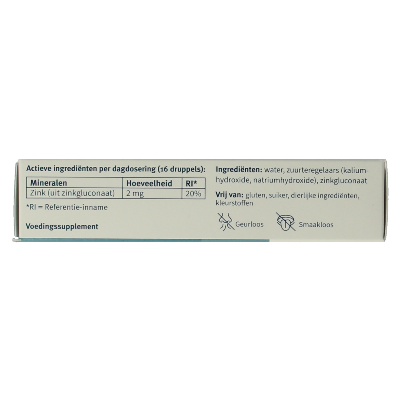 | Zink (uit zinkgluconaat | 2 mg | 20% |