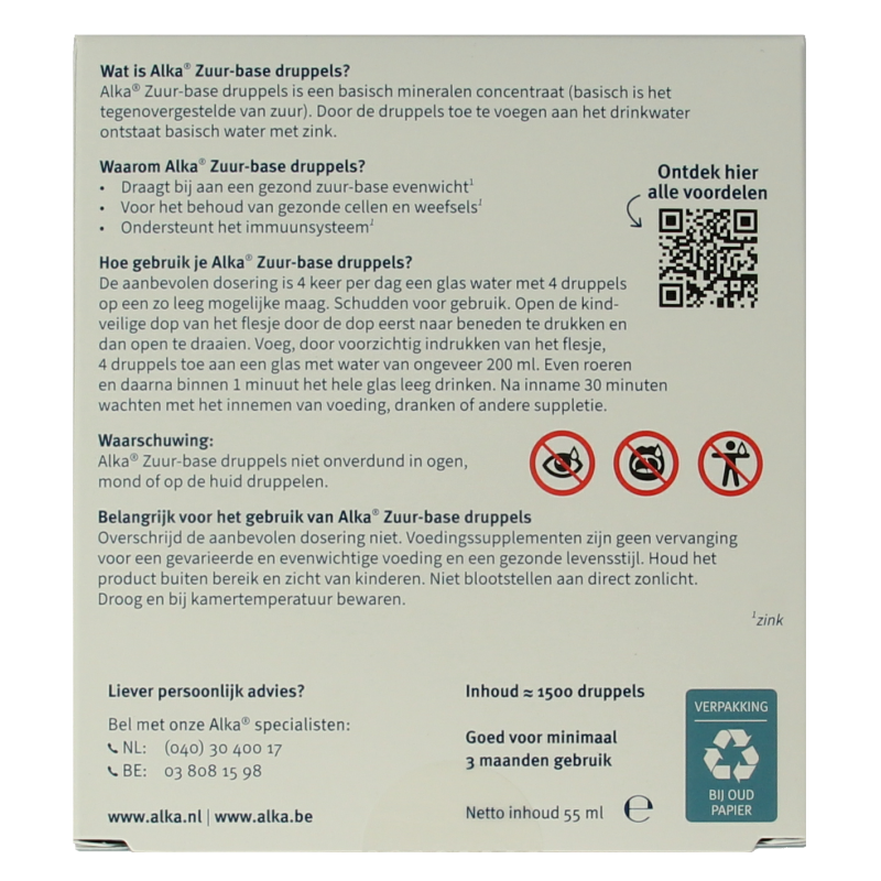 Alka® Druppels niet onverdund in ogen, mond of op de huid druppelen. In geval van contact (met name de ogen), goed spoelen met water. Mogelijk ontstane wondjes of irritaties op de huid kunnen vaak vanzelf herstellen. Bij contact van de onverdunde druppels met de ogen, mond of slokdarm, goed spoelen met water en onmiddellijk een arts waarschuwen.