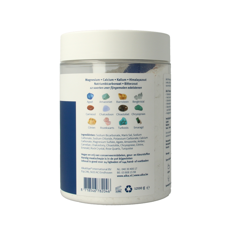 Vegan en vrij van conserveermiddelen, geur- en kleurstoffen. Handig maatschepje is in de pot bijgesloten. Inhoud is goed voor 24 ligbaden of 144 hand- of voetbaden.