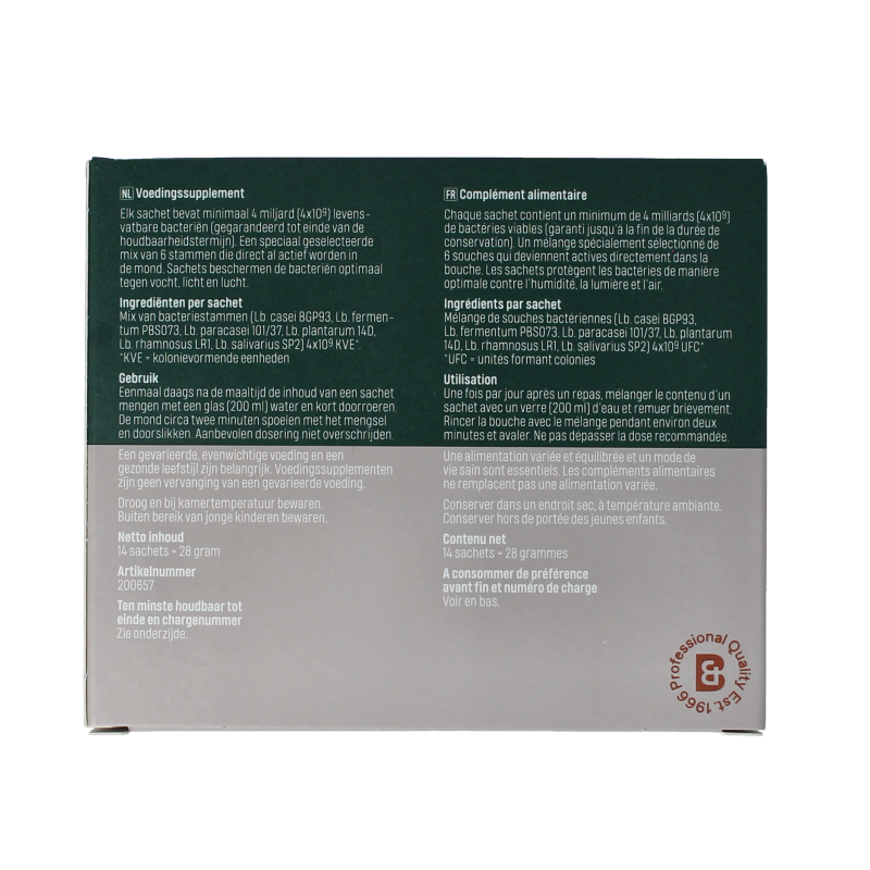 Bacteri 6 Oral bevat 6 speciaal geselecteerde lactobacillen. De lactobacillen ontkiemen tijdens het spoelen in de mond.