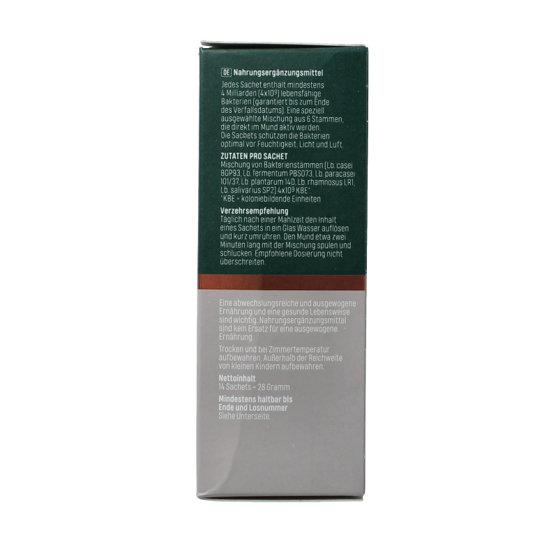 Tenzij anders aanbevolen gedurende twee weken aan het begin van de dag de inhoud van een sachet mengen met een glas water en kort doorroeren. Na elke maaltijd circa twee minuten de mond spoelen met het (opnieuw omgeroerde) mengsel en doorslikken. Mengsel buiten de koelkast bewaren. In plaats van spoelen kan ook het poeder op een natte tandenborstel worden aangebracht om er twee minuten mee te tandenpoetsen. Spoel de tandenborstel goed uit na gebruik.