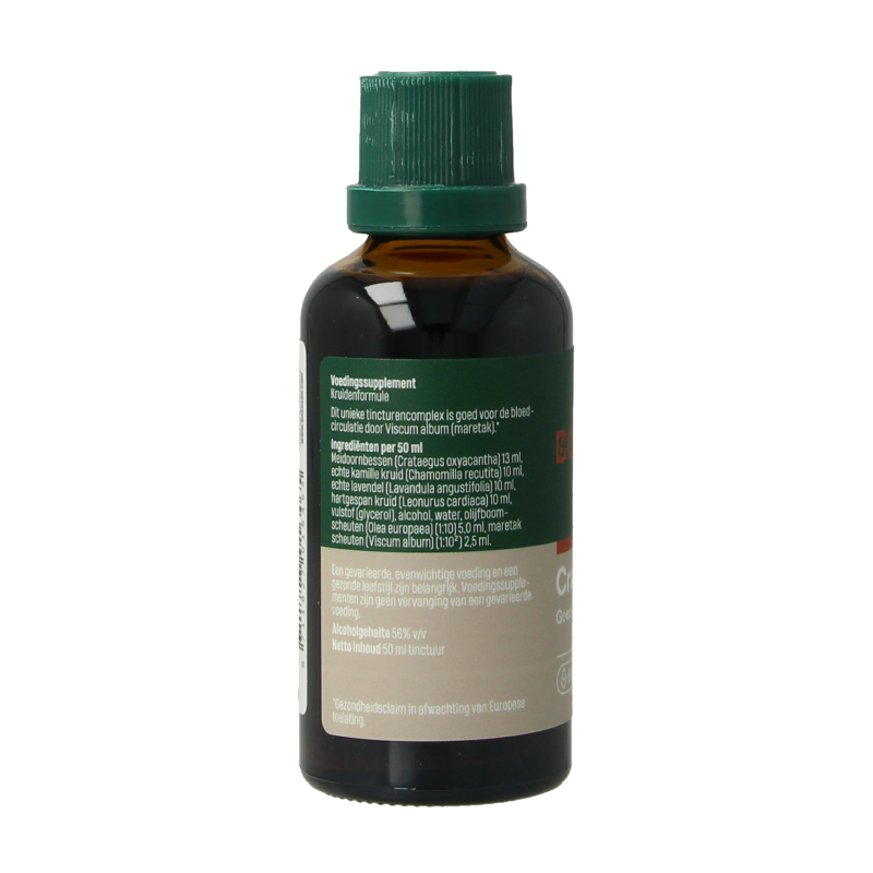 Crataegus oxyacantha, Chamomilla recutita, Lavandula angustifolia, Leonurus cardiaca, vulstof (glycerol), alcohol, water, Olea europaea, Viscum album. Alcoholpercentage 56% v/v.
