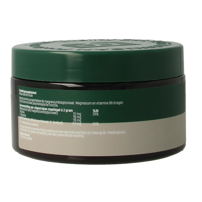 | Magnesium (als magnesiumbisglycinaat) | 111 mg | 29% |