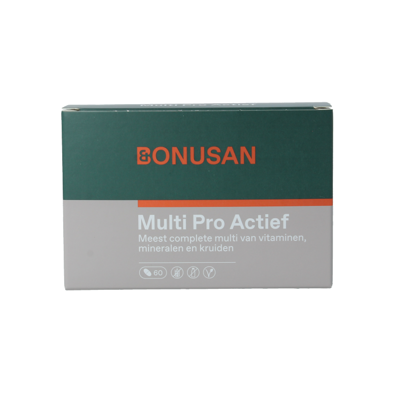 Met meer dan 60 vitaminen, mineralen en plantenextracten is Multi Pro Actief de meest complete multivitamine voor iedereen die het voedingspatroon wil aanvullen met de beste ingrediënten.