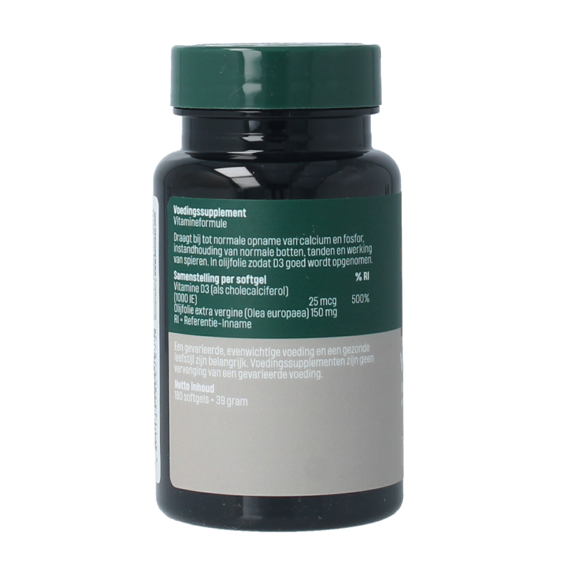Vulstof (extra vierge olijfolie), capsulewand (gelatine, glycerine, water), vitamine D3 (cholecalciferol)