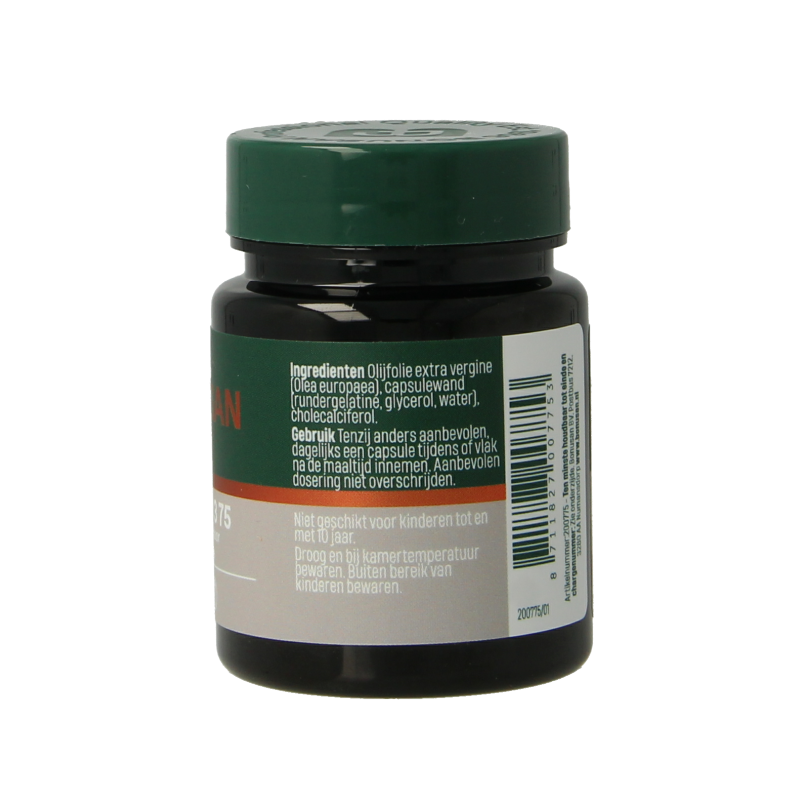 Olijfolie extra vergine (Olea europaea), capsulewand (rundergelatine, glycerol, water), cholecalciferol.