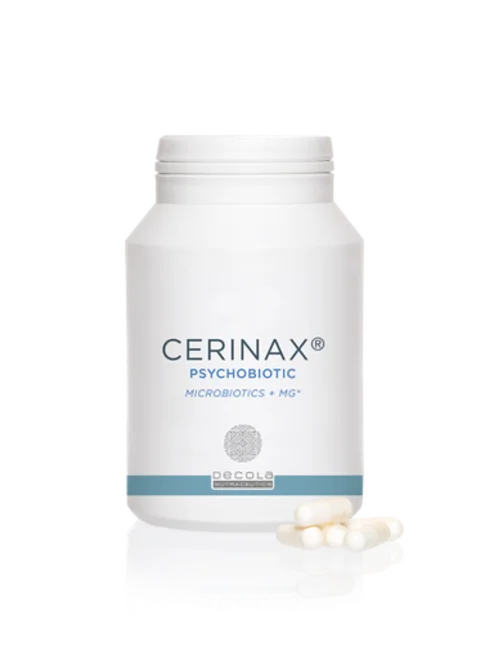 Cerinax is een innovatief voedingssupplement bestaande uit specifieke darmbacteriën (psychobiotica) in combinatie met Galacto-oligo-sacchariden, L-glutamine en magnesium, dat instaat voor het behoud van een normale psychologische functie.