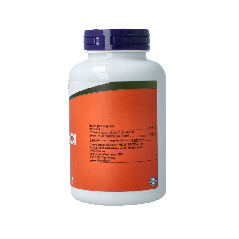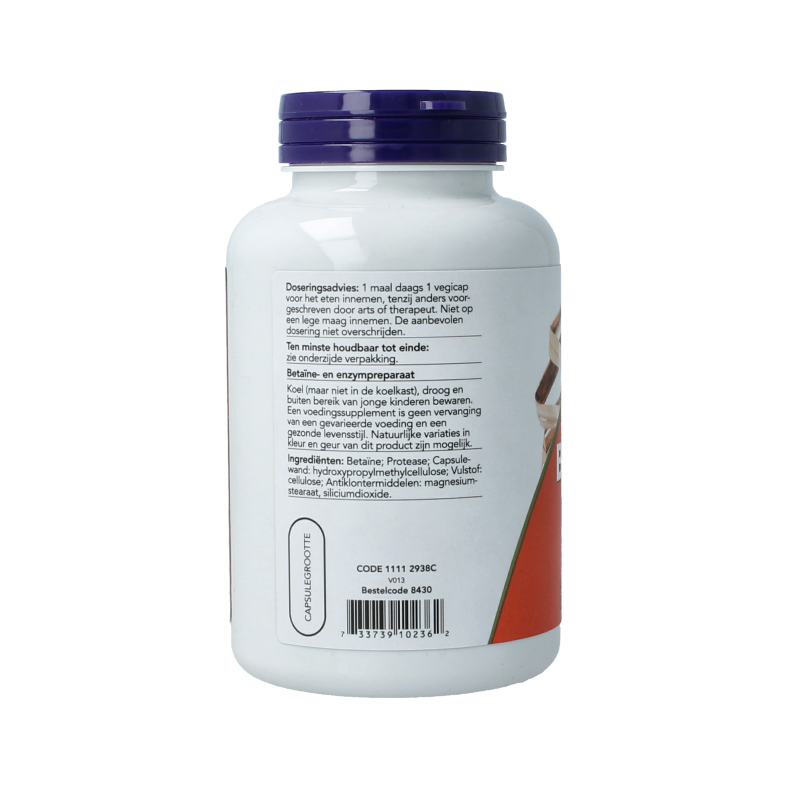 Betaïne, Protease, Capsulewand (Hydroxypropylmethylcellulose), Vulstof (Cellulose), Antiklontermiddelen (Magnesiumstearaat, Siliciumdioxide).