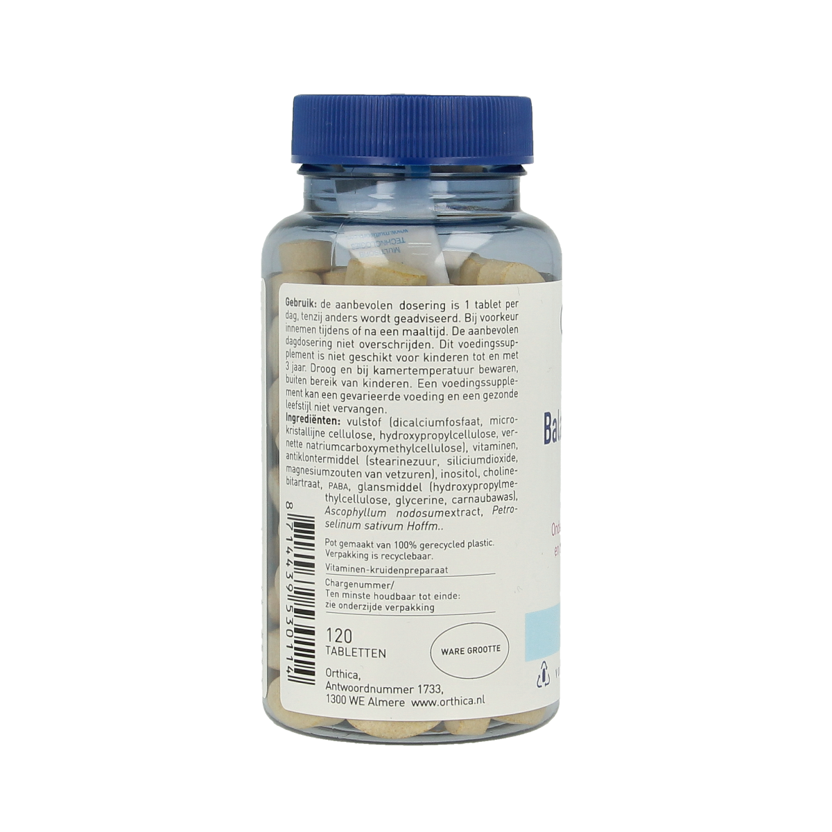 Voor gezond zijn en fit blijven is een gezonde voeding essentieel. In drukke perioden kan het zijn dat je als aanvulling hierop een extraatje zoekt om je geheugen2, je concentratievermogen2 en je weerstand tegen stress3 te ondersteunen. Je kunt dan kiezen voor een voedingssupplement met vitamine B-complex. Bepaalde B-vitaminen zijn betrokken bij het helpen vrijmaken van energie uit de voeding1 en andere B-vitaminen hebben en positieve invloed op de werking van het zenuwstelsel5. Balanced B-50 is lager gedoseerd dan B 100 (vanaf minimaal 1x de ADH) en bevat vitamine C als extra ter ondersteuning van de weerstand. Balanced B50 & C bevat ook plantenextracten zoals kelp (bevat 1 % jodium) en alfalfa.