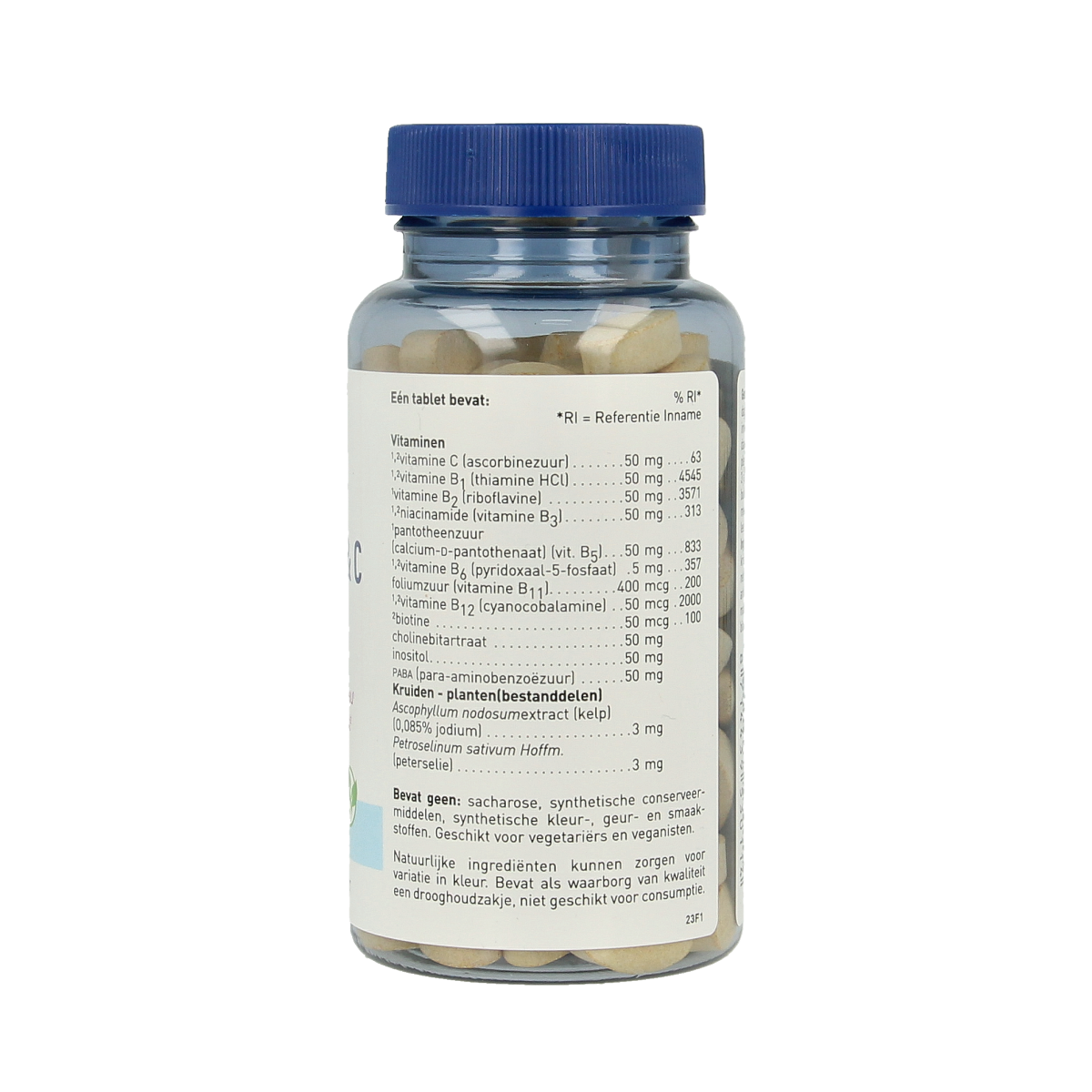 Balanced B 50 & C is gunstig voor een goede geestelijke balans (vitamine B3, B5, B6, foliumzuur, vitamine B12 en vitamine C) en voor een normaal concentratievermogen (vitamine B1, B3, B6, B12, biotine en vitamine C). Foliumzuur draagt bij aan je weerstand tegen stress. Vitamine C helpt bij futloosheid en verhoogt de ijzeropname in je lichaam. Daarnaast heeft vitamine C een positieve invloed op je immuunsysteem en draagt het bij aan een heldere geest. Jodium activeert de natuurlijke energie in je lichaam, is van belang voor je zenuwstelsel en draagt bij aan de normale werking van je geheugen.