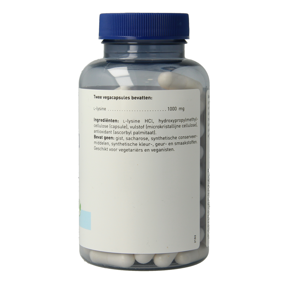 L-lysine HCl, hydroxypropylmethylcellulose (capsule), vulstof (microkristallijne cellulose), antioxidant (ascorbyl palmitaat).