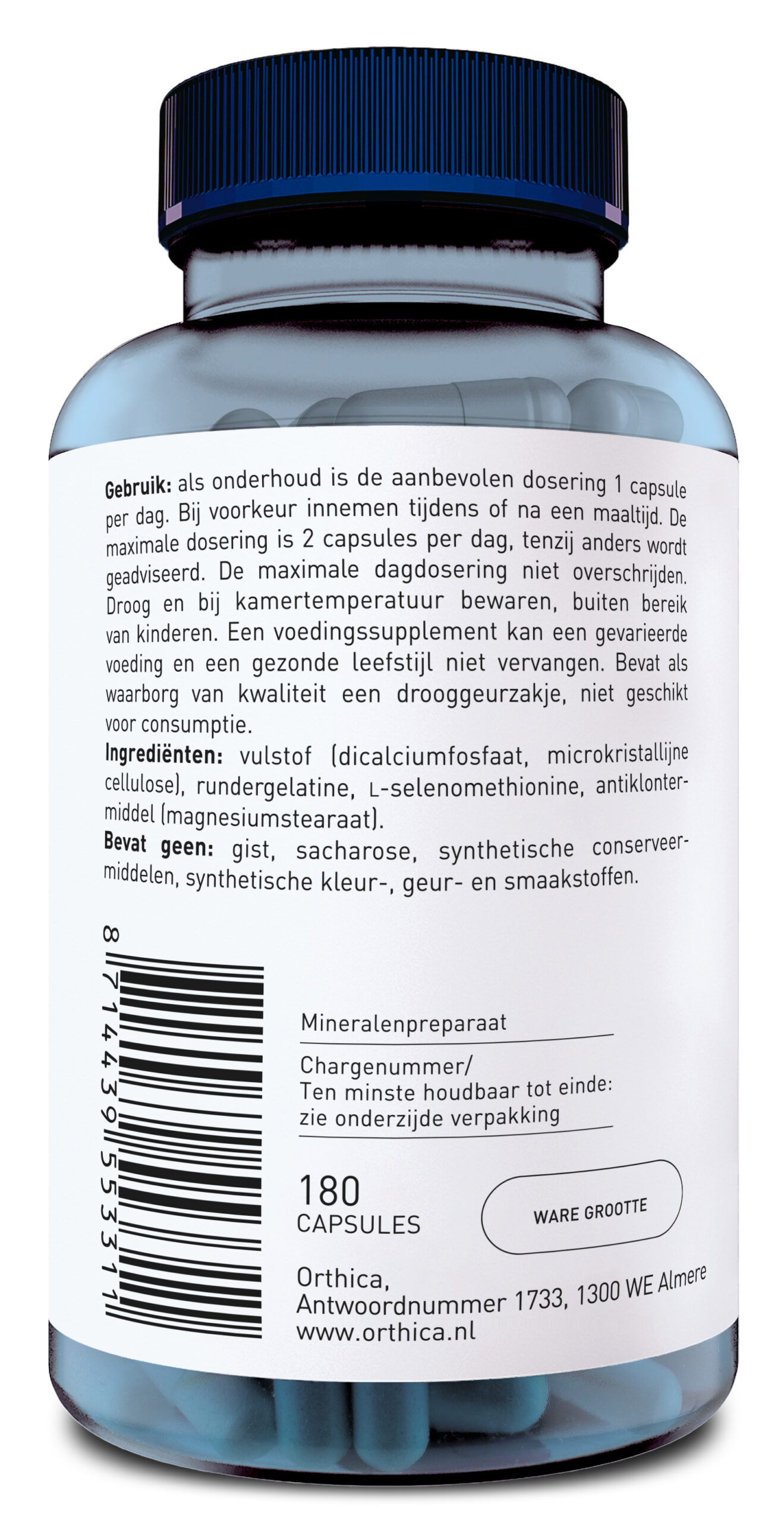 vulstof (dicalciumfosfaat, microkristallijne cellulose), rundergelatine, L-selenomethionine, antiklontermiddel (magnesiumstearaat).