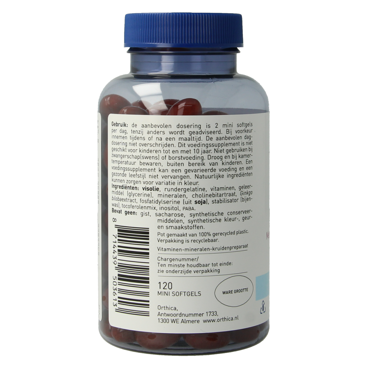 VISolie, rundergelatine, vitaminen, geleermiddel (glycerine), mineralen, cholinebitartraat, ginkgo biloba extract, fosfatidylserine (uit SOJA), stabilisator (bijenwas), tocoferolenmix, inositol, PABA
