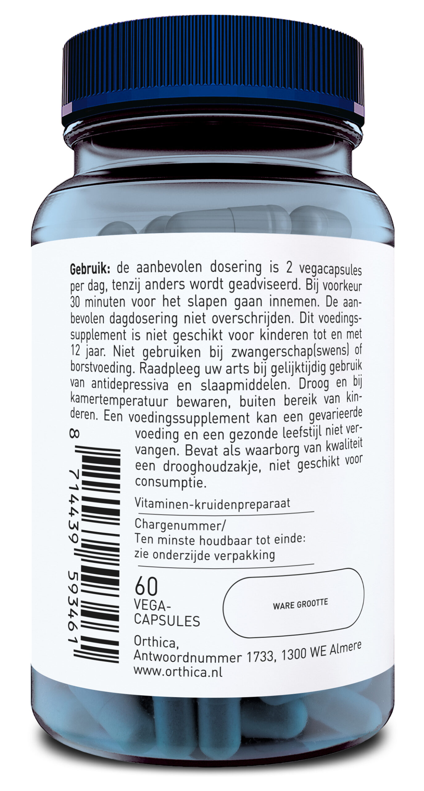De aanbevolen dosering is 2 vegacapsules per dag, tenzij anders geadviseerd. Bij voorkeur 30 minuten voor het slapen gaan innemen. Niet geschikt voor kinderen tot en met 12 jaar.Niet gebruiken bij zwangerschap(swens) of borstvoedingRaadpleeg uw arts bij gelijktijdig gebruik van antidepressiva en slaapmiddelen.