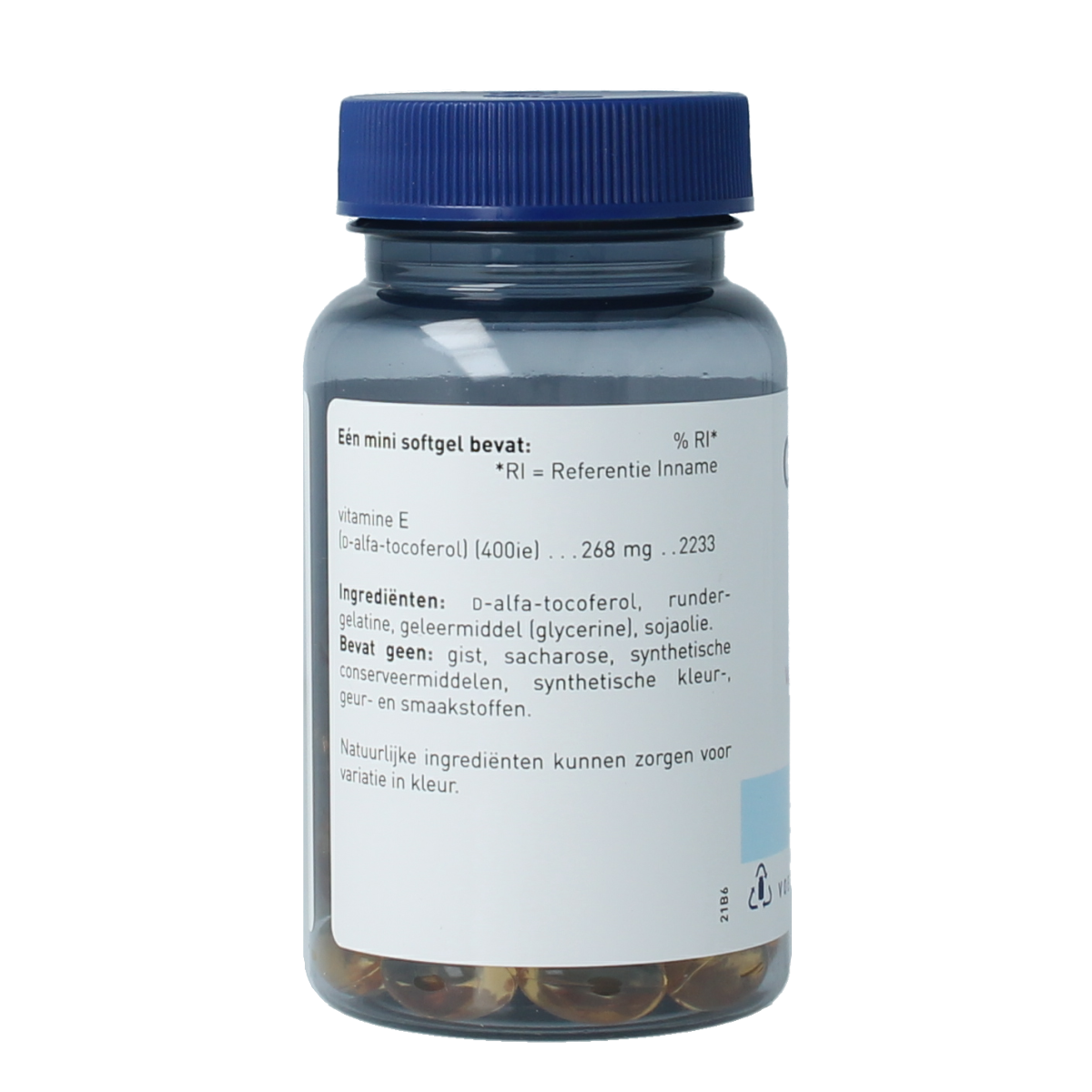 D-alfa-tocoferol, rundergelatine, geleermiddel (glycerine), SOJAolie.