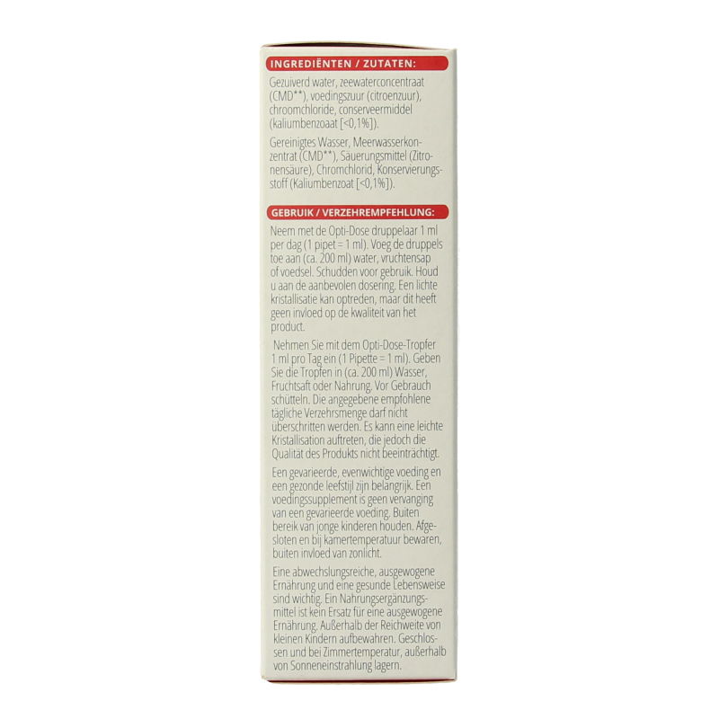 Gezuiverd water, zeewaterconcentraat (CMD), voedingszuur (citroenzuur,) chroomchloride, conserveermiddel (kaliumbenzoaat [< 0,1%]).