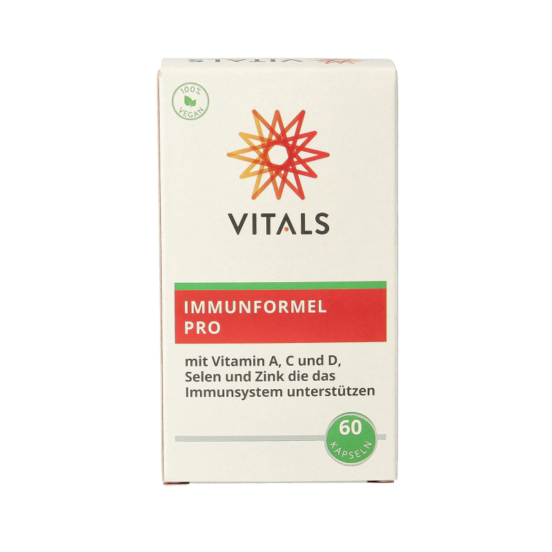 Vitamine D is een vitamine die niet in grote hoeveelheden in voeding zit, maar die vooral in de huid aangemaakt wordt onder invloed van zonlicht. Uiteraard is men hierbij wel afhankelijk van voldoende zonneschijn, wat in landen als Nederland of Duitsland absoluut geen zekerheid is.Als voedingssupplement heeft de vorm van vitamine D3 qua effectiviteit een grote voorkeur boven vitamine D2. Een nadeel van vitamine D3 is echter dat het in de meeste gevallen gemaakt wordt uit schapenwolvet en dus niet geschikt is voor veganisten. In Immuunformule Pro wordt daarom gebruikgemaakt van een nieuwere vorm van vitamine D3 uit algen (Vitamin D3V®). Hiermee is Immuunformule Pro ook geschikt voor veganisten. Immuunformule Pro biedt een ruime dosering vitamine D als aanvulling op de voeding en de eigen aanmaak door zonlicht.