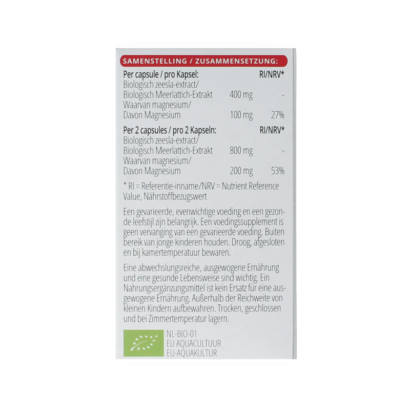 | Biologisch zeesla-extract | 800 mg | – |